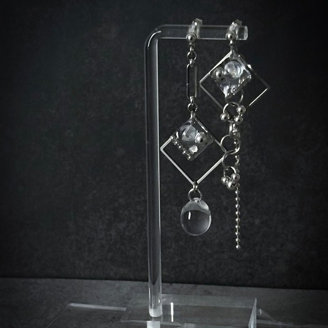 クリアとシルバーのきれいめモードピアス|イヤリング