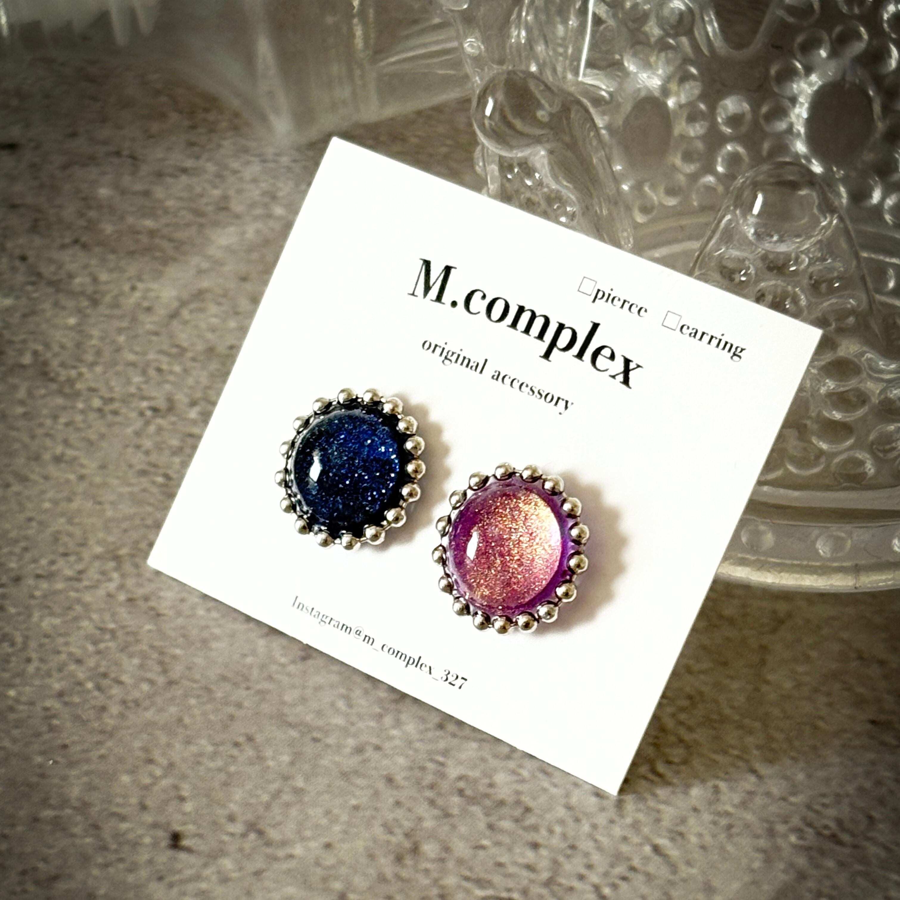 ヴィンテージ風バイカラーモードピアス|イヤリング【ブルー×パープル】