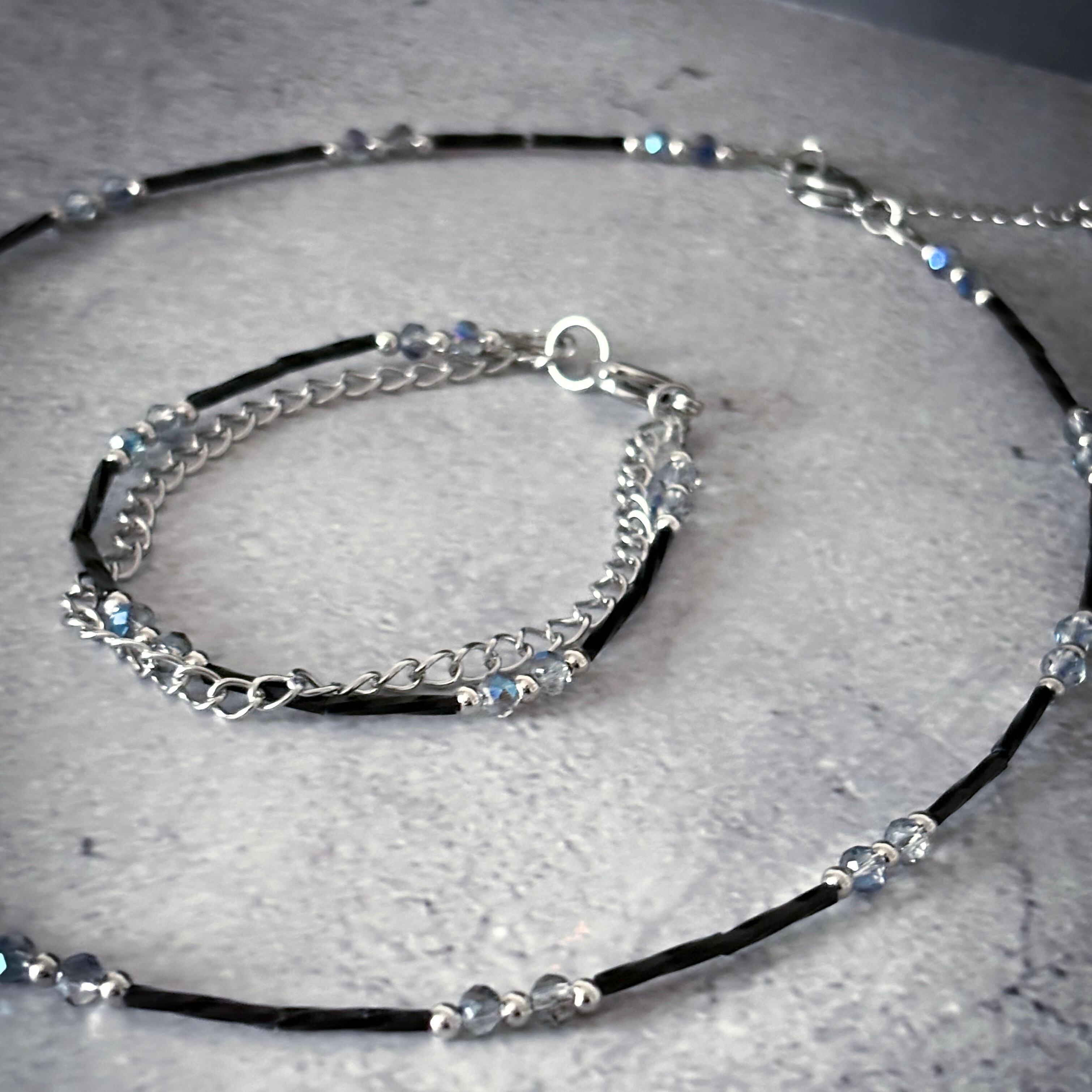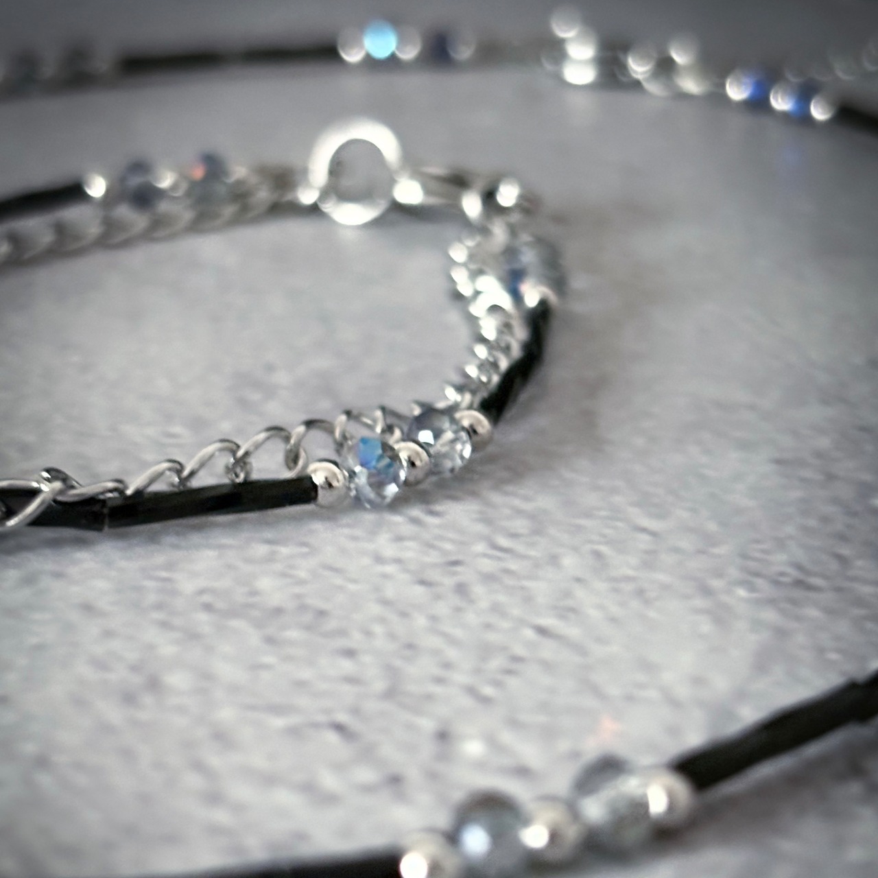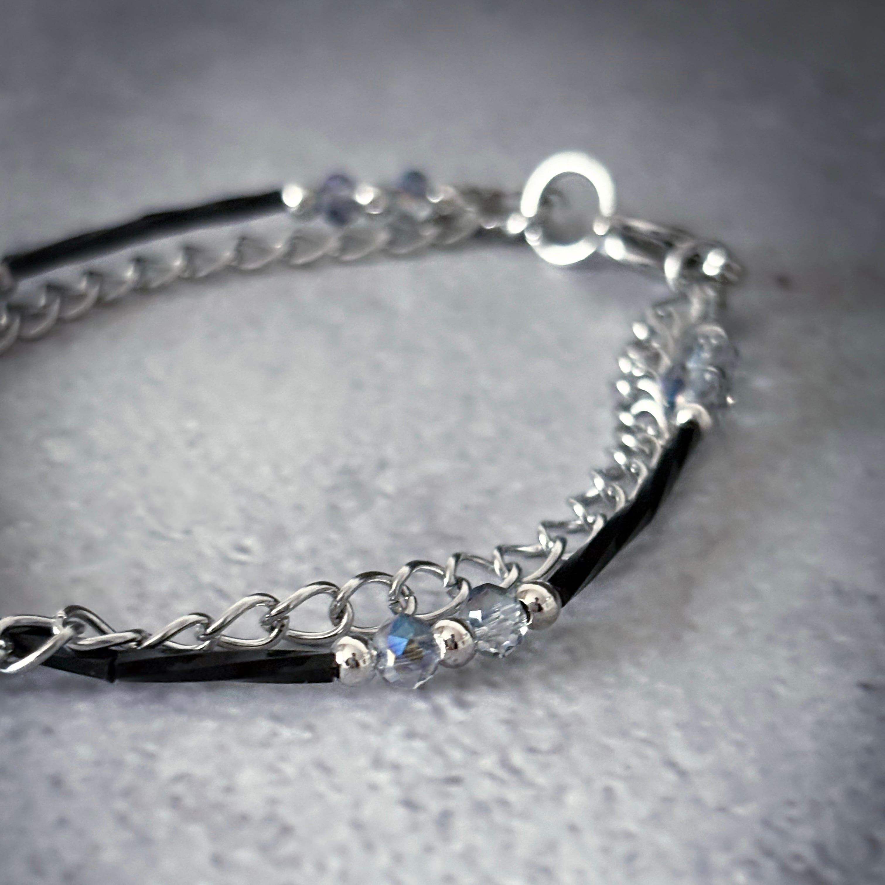 華奢なビーズとシルバーチェーンの