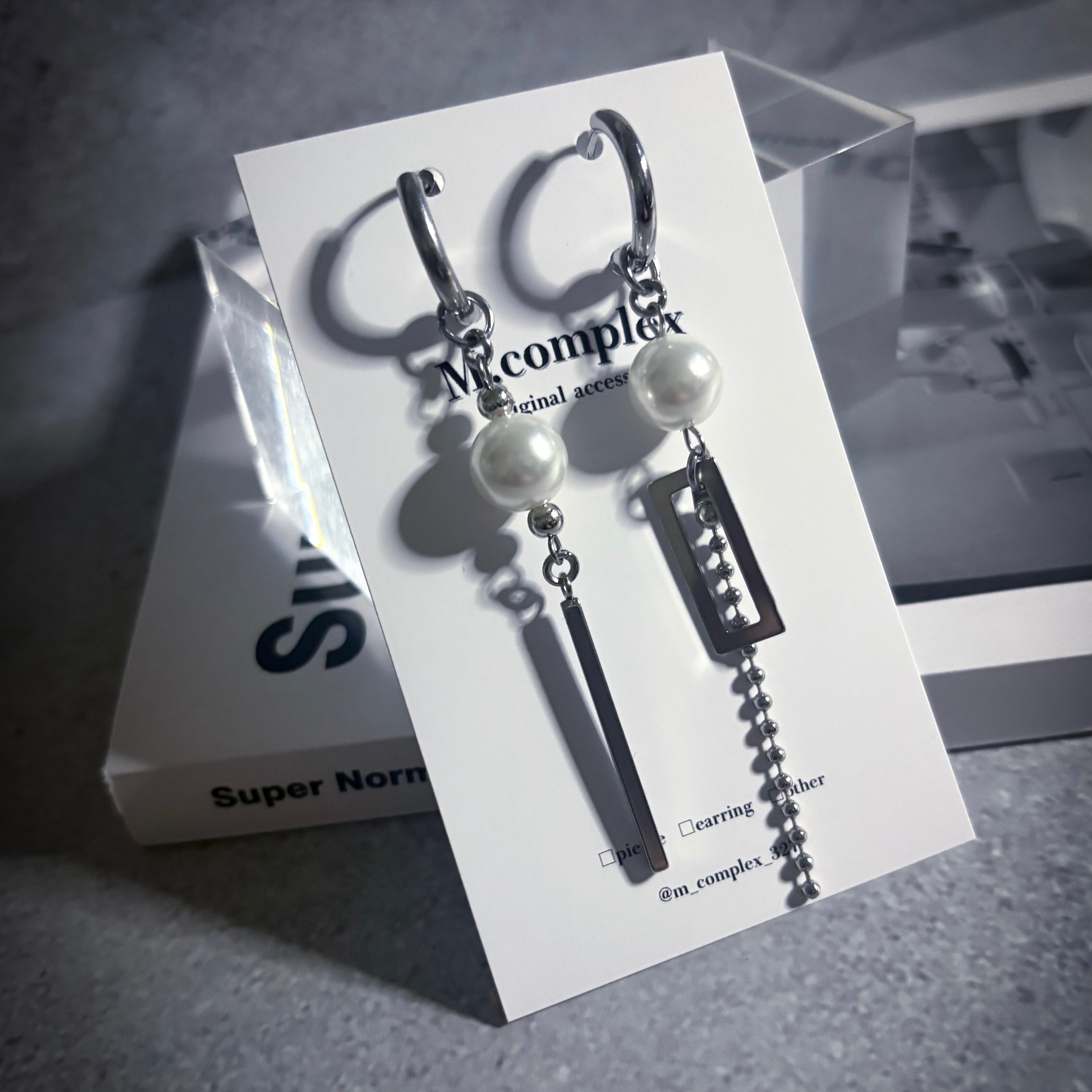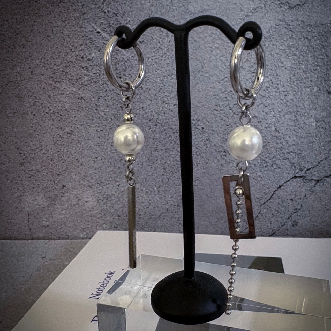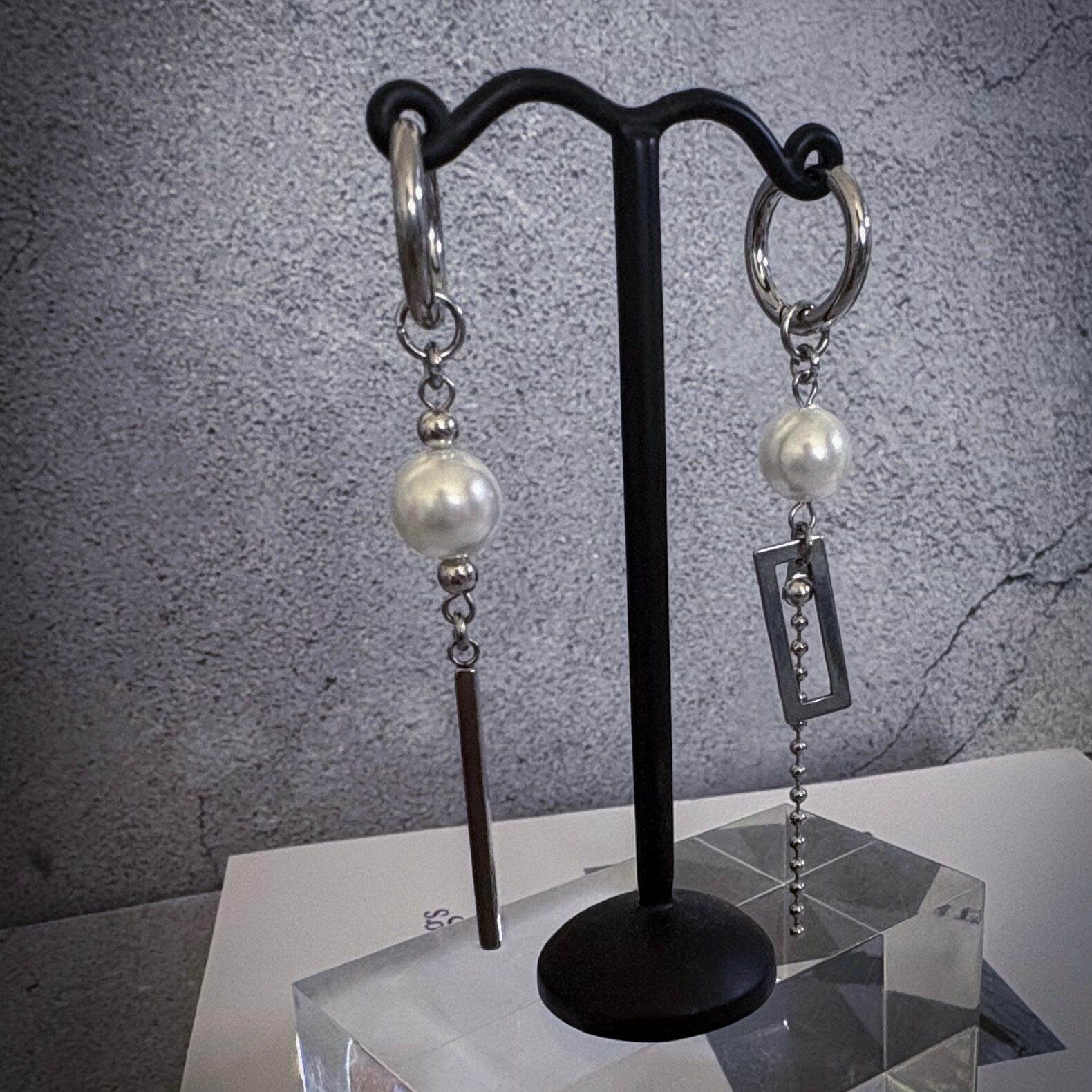 パールとシルバー アシメフープピアス|イヤリング