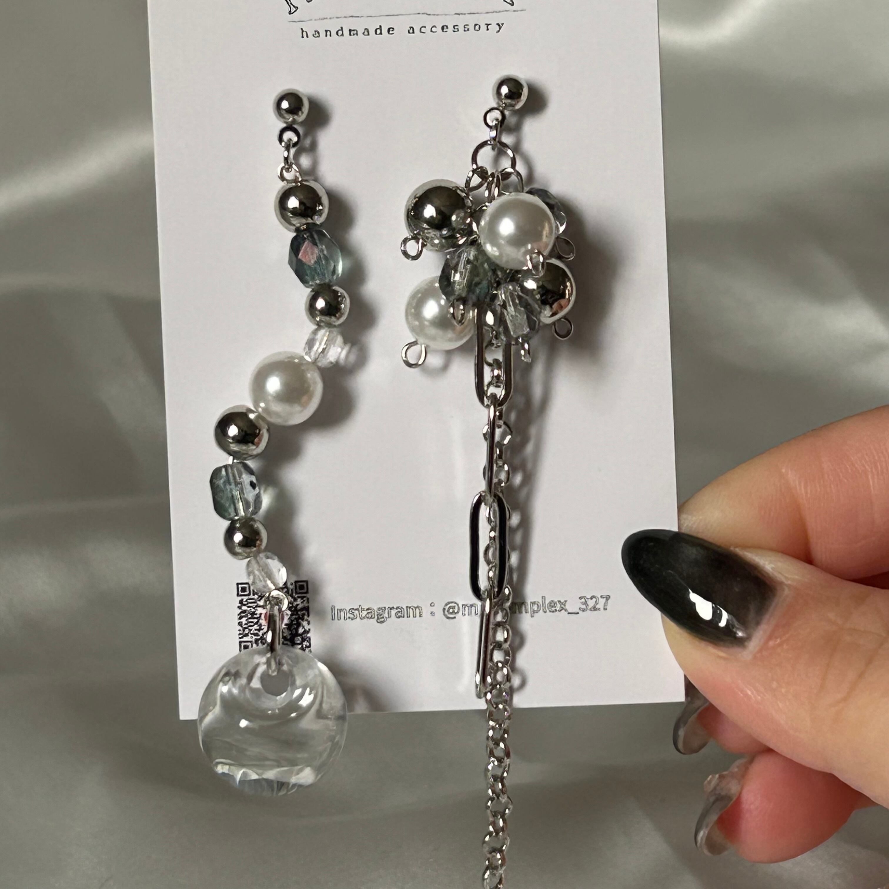 個性的な大ぶりアシンメトリーピアス|イヤリング。